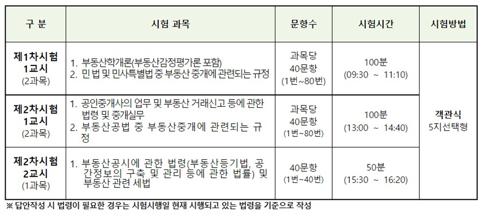 2024 공인중개사 시험과목