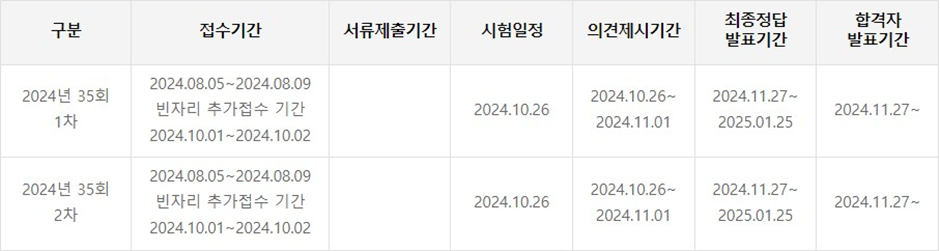 - 시험일정: 2024년 10월 26일